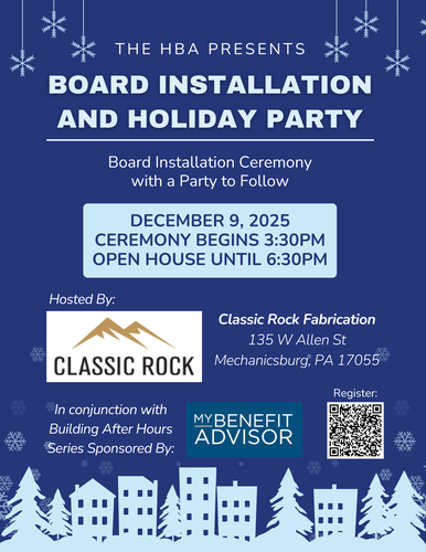 The Board Installation and Holiday Party will be held in conjunction with our “Building After Hours” Social.